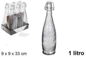 Pack 12 Botellas Cristal Tapón Hermético Milán 1 L / Medidas 9x9x33cm