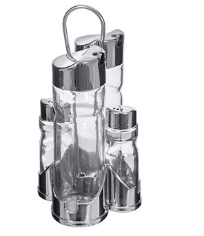 Pack 12 Set Aceiteras & Vinajeras y Saleros & Pimenteros Cristal / Acero Inoxidable / Medidas 10.50x20x11cm