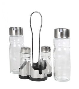 Pack 12 Set Aceiteras & Vinajeras y Saleros & Pimenteros Cristal / Acero Inoxidable / Medidas 10.50x20x11cm