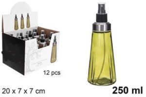 Pack 24 Aceiteras Cristal Verde PRO Cónica / Tapón Pulverizador 250 ml /Medidas 20x7x7cm
