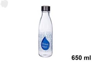Pack 24 Botellas Agua Cristal Tapón Acero / Drink H2O 650 ml / Medidas 7x7x25cm