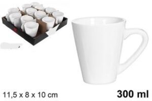 Pack 24 Tazas Mug Cónica Cerámica Blanca 300 ml/ Medidas 12x8x9,5cm