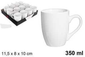 Pack 36 Tazas Mug Cónica Cerámica Blanca 350 ml / Medidas 11,5x8x10cm