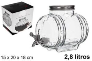 Pack 6 Barriles Cristal / Dispensador Bebidas c/ Grifo 2,8 L / Medidas 15x20x18cm